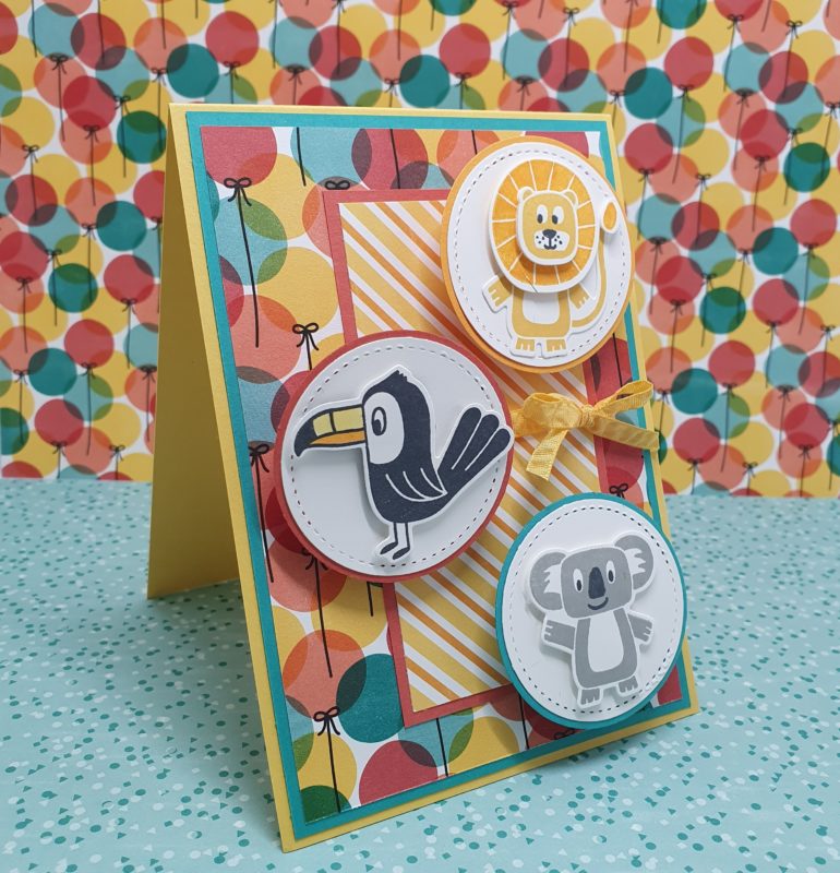 Ik hoor je denken: wat is nu een Wobble? Nou, dat is een spiraalvormig wiebelgevalletje dat je achter een afbeelding kunt plakken en bij bewegen van de kaart gaat dan de afbeelding wat wiebelen. Heel leuk om te zien. Op deze kaart zitten er dus wel drie. Een drukte van belang in de dierentuin!