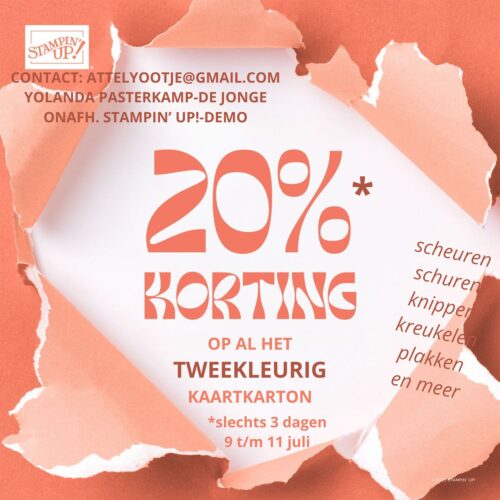 Verder komt er tussen 9 en 11 juli een aanbieding: het Tweekleurig Kaartkarton voor 20% korting. Er is geen bestel-limiet.