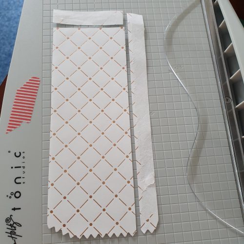 Op de foto hierboven kun je ook zien, dat ik één van de tags versmald heb door er links en rechts een stukje af te snijden.