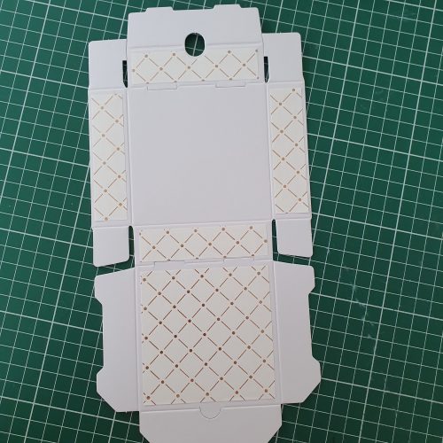De Mini Pizza Box is beplakt met stukjes van een Copper Dotted Treat Bag.