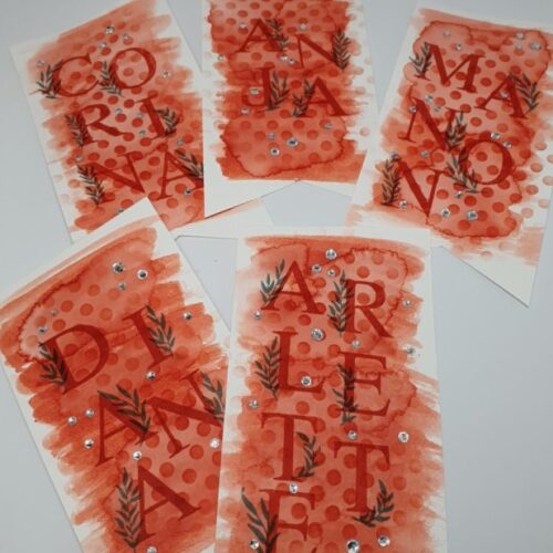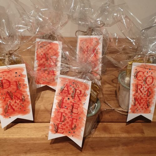 Voor de dames/collega’s die aanwezig waren bij het alvast-voor-afscheids-etentje (bij Tr3s Tapas Bar in Gorinchem, een aanrader!) had ik cadeautjes op naam gemaakt.