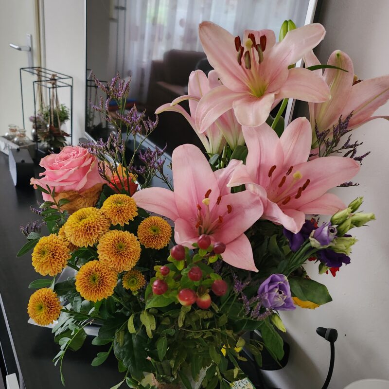 Onlangs maakte ik een stapeltje bedankkaartjes voor mijn bestellende klanten. En die kleuren: ze komen terug in de mand met bloemen die ik kreeg voor Moederdag. En kort daarvóór kregen wij voor onze trouwdag een mooi fris boeket bloemen. Zo mooi! De kleuren passen helemaal bij deze nieuwe InColors!