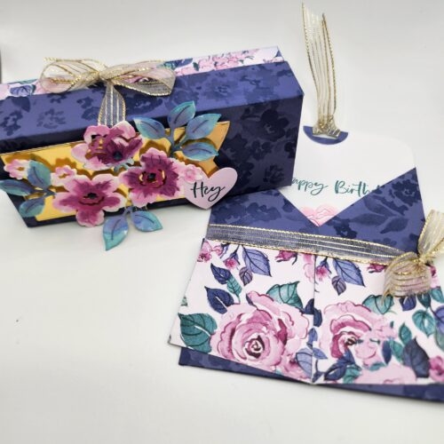 Ik koos voor een setje: een cadeaudoosje voor wat lekker in te doen, samen met een kado-envelop voor geld, dat kan voor in de pocket. In de achterste pocket zit een felicitatiekaart.