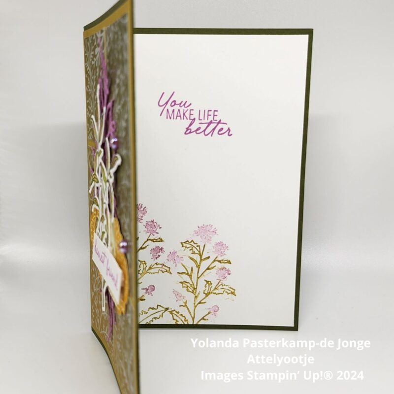 In de binnenkant heb ik een paar stempels uit de bijpassende stempelset geplaatst en een tekststempel uit de Nederlandstalige stempelset Liefde en Lichtpuntjes (164496).