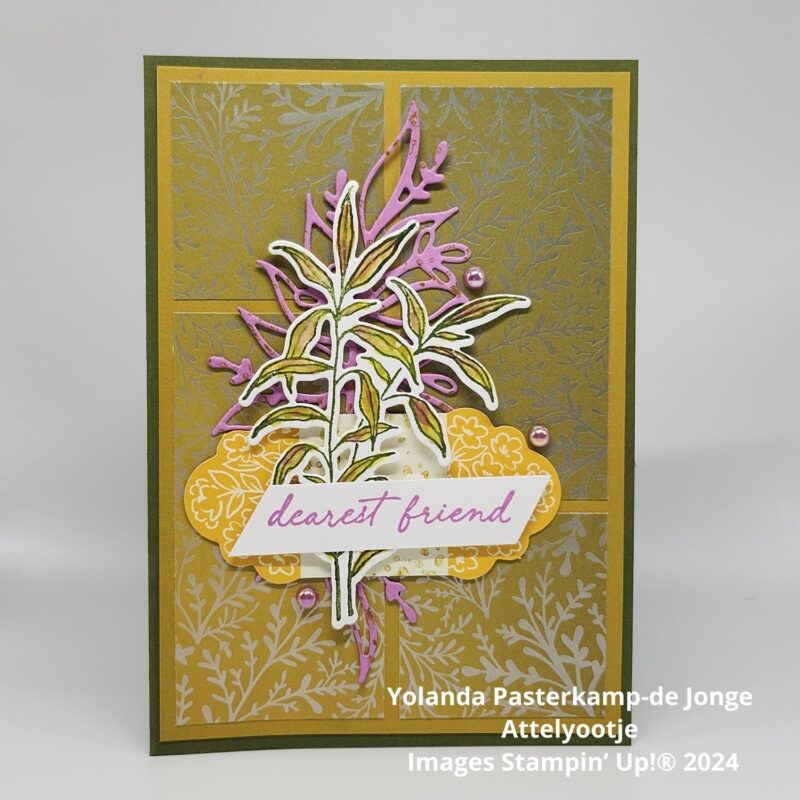 Omdat er al veel goud in de kaart is verwerkt heb ik bewust geen “Bloemaccenten” gebruikt die ook in het pakketje zaten.