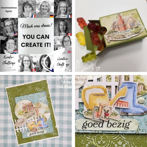Deze maandelijkse createive uitdaging is een initiatief van Anja Luft en Heike Fallwickl, demo’s in Duitsland. Een maandelijkse kit waarmee elke deelnemer aan de slag gaat. Het leuke ervan is, dat je mee kan doen en jezelf uitdaagt tot het maken van een kaart of misschien wel een leuke mini-verpakking. Er doen demo’s mee uit verschillende landen over de hele wereld. Maandelijks, op de tweede dag van de maand, posten wij onze verzameling aan inspiratie van onszelf én van de deelnemers.