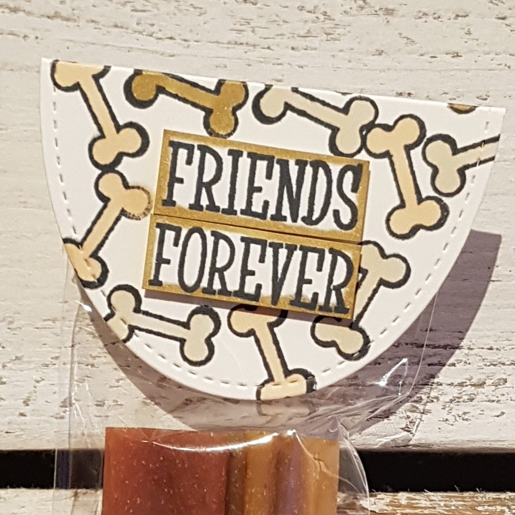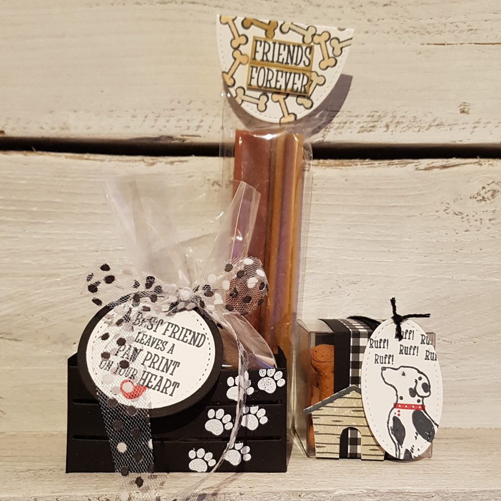 Een bekende van ons krijgt binnenkort een pup, en daardoor kwam ik op de gedachte wat lekkertjes te verpakken om kado te doen. En daarbij zijn ook geschenklabels nodig. Deze stempelset leent zich hier prima voor. En er is een bijpassende pons van, leuk!