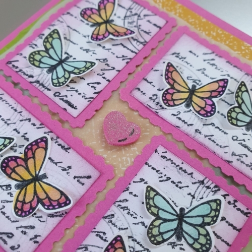 Een vrolijk kaartje Yolanda! Mooi gedaan met de vlindertjes en de postzegels! xx