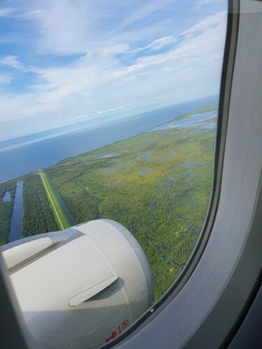 We hebben de reis in 2 delen afgelegd, in Dallas was een overstap. Leuk: met een flitstreintje “door de lucht” van A naar B gebracht. Echt pijlsnel! Goed vasthouden dus.