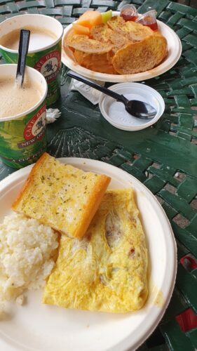 We hebben ‘s avonds een verkenningsronde gedaan en hadden ons oog laten vallen op het Café Beignet voor ons ontbijt. Terwijl wij buiten in de schaduw (was net genoeg ruimte voor 2 stoelen/tafel) zaten te genieten van ons eten…