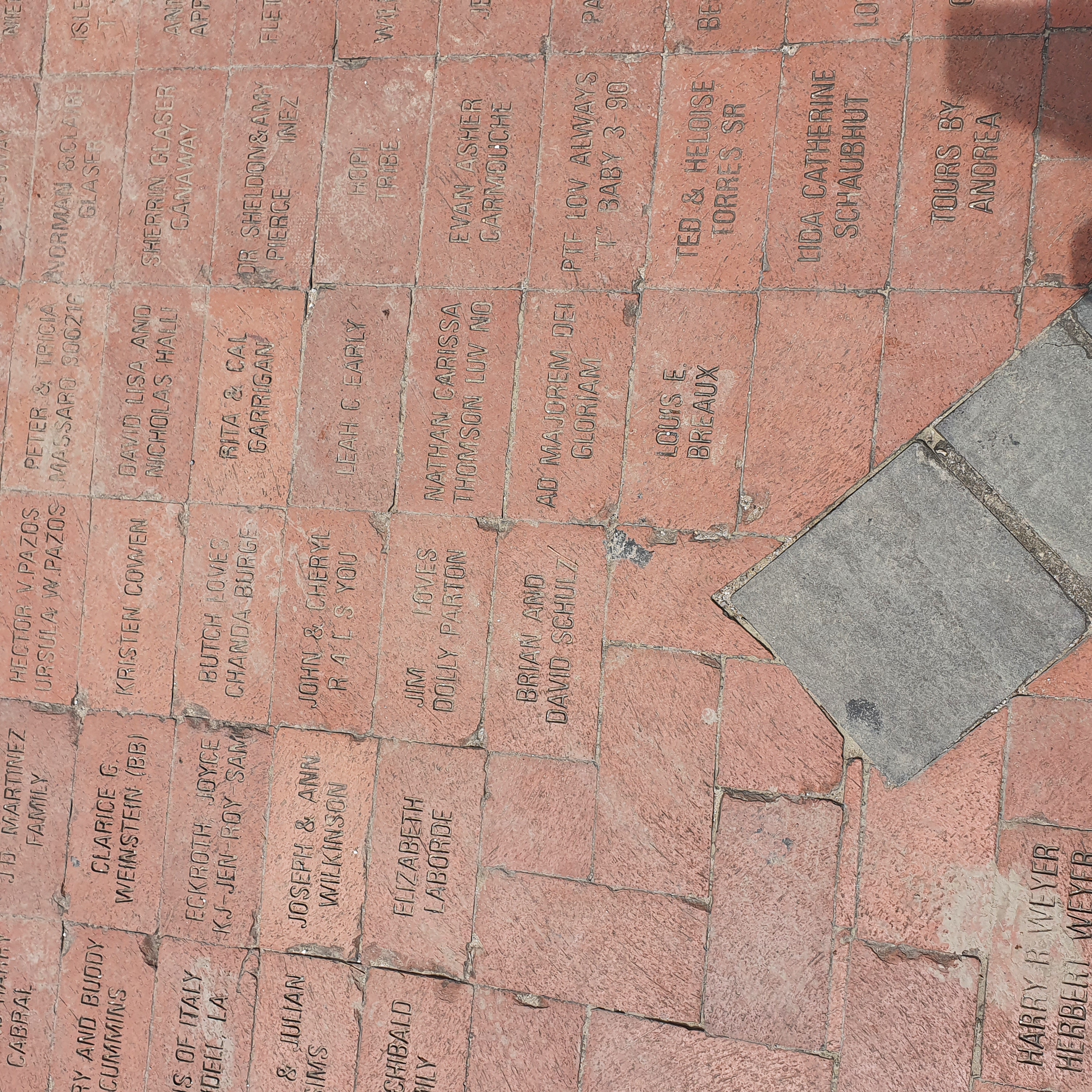 Voor zover ik het begrepen heb zijn het stenen met namen van donateurs om het naastgelegen Audubon Aquarium in stand te houden, voor leefomgeving van de dieren, onderzoek en onderwijs etc. Leuke vraag! Dankjewel!