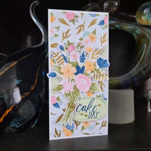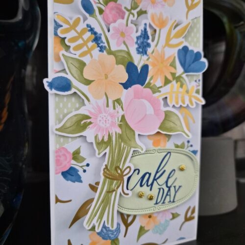 Het is Cake-Day vandaag. Want vandaag is er iemand jarig en zij verdient een mooie kaart. Dat heb ik gefixt met dit mooie Speciaal DSP Wildflower Birthday in combinatie met de leuke bijpassende stempelset.