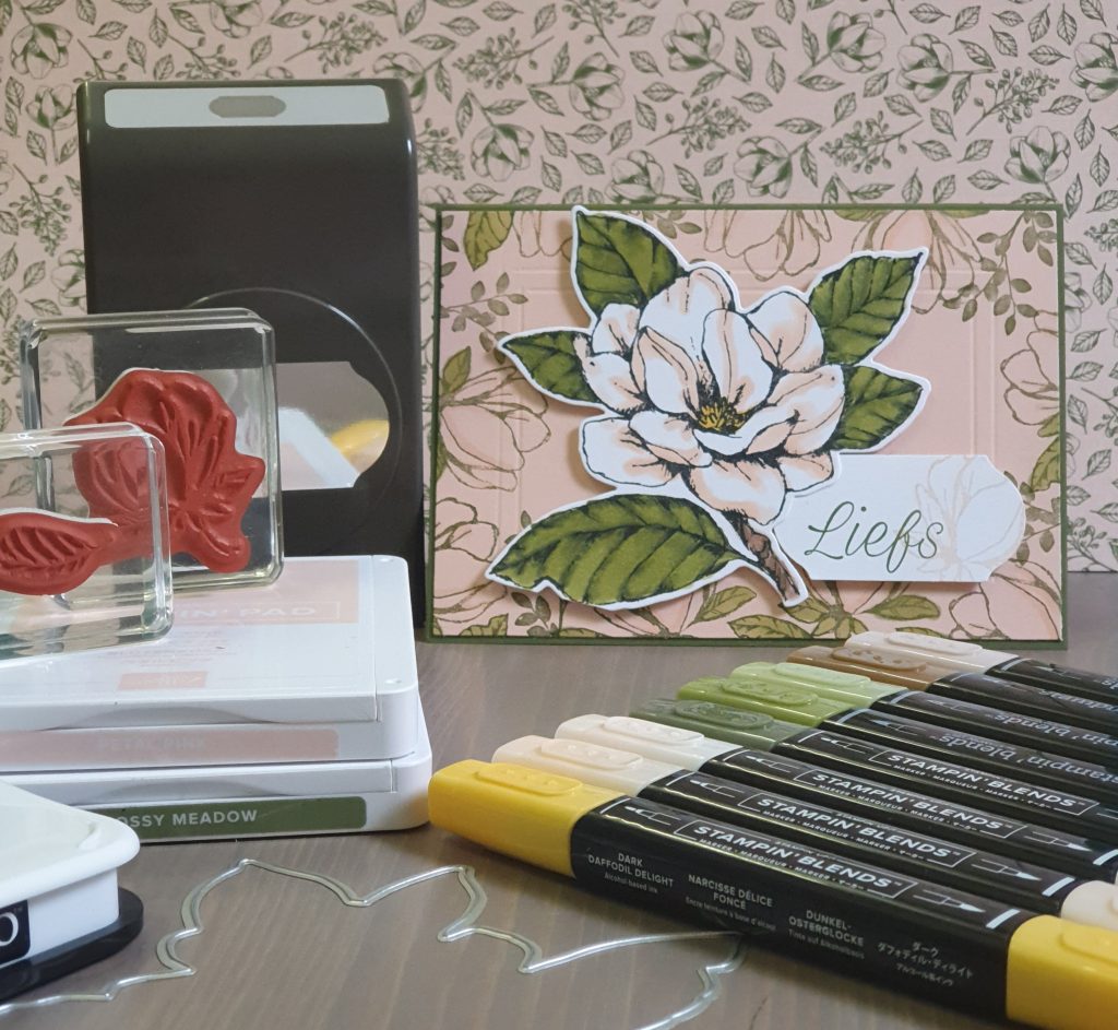 Goodmorning Magnolia is een prachtige stempelset, eventueel te combineren met de stansen, en bij aanschaf van deze bundel krijg je ook nog eens 10% korting. Er is ook bijpassend DSP, heeeeel mooi kan ik je verzekeren.