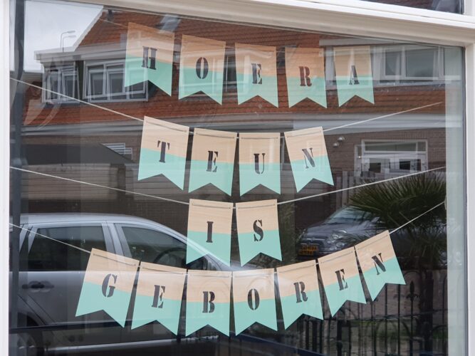 5. Gefeliciteerd trotse oma en opa. Fijn dat het goed is gegaan. Leuk gedaan die (k)raamslinger. Geniet er maar van, ook de ouders gefeliciteerd, het is en blijft een wonder zo’n geboorte.