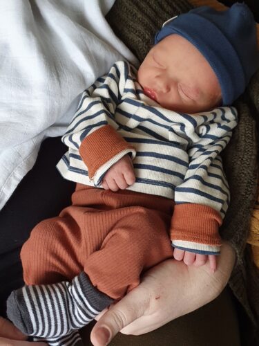 Hij is afgelopen vrijdag 19 maart geboren na een voorspoedige bevalling. Na een nachtje ziekenhuis genieten zij nu thuis met zijn drietjes. Eigenlijk met zijn viertjes: poes Flo moet er nog een beetje aan wennen dat ze het rijk niet meer alleen heeft.