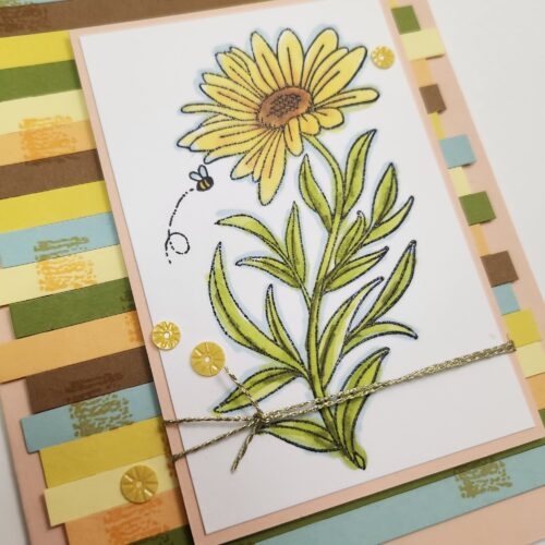 Op beide kaarten heb ik dat gedaan. Het vierkante ruitje komt uit dezelfde set als de bloem (You are Remarkable – 165445). Leuk om hier en daar in een achtergrond te verwerken.