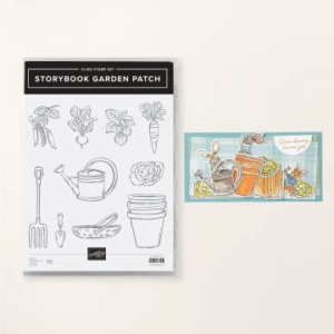 De achtergrond stempelde ik de aardbeitjes uit de set Storybook Garden Patch – 164663. Leuke combi geworden he?