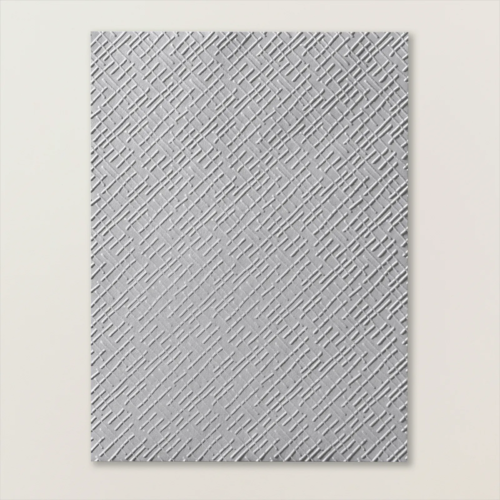 Hierna heb ik repen Basic White kaartkarton geëbosst met de mal met kruisarcering: deze is onderdeel van een 3-delige embossingmallenset met basisstructuren. Supergave set, waarbij deze bijna wel mijn favoriet is: