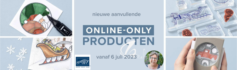 Wat is nu Online-Only ook alweer? Dat zijn producten die niet op papier staan, dus niet in de catalogus. Ze gaan buiten de catalogus om, en zijn verkrijgbaar (zolang de voorraad strekt) bij mij als demonstratrice, of je kan ze online bestellen in mijn Stampin’ Up!-webwinkel.
