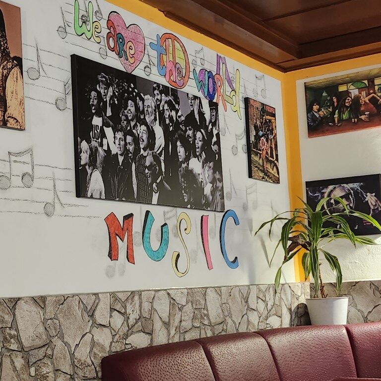 Later die middag zijn we op zoek gegaan naar een restaurant en kwamen weer uit bij hetzelfde als de avond tevoren: Woodstock – Food and Music. Een gezellig restaurant dat gerund wordt door een paar ijverige jongelui, erg vriendelijk en behulpzaam. De muren zijn voorzien van oude LP’s, gitaren, schilderingen/tekeningen op allerlei muzikaal gebied. Er doorheen hangen foto’s van artiesten die in het verleden, maar ook nu nog steeds grote bekendheid genieten.