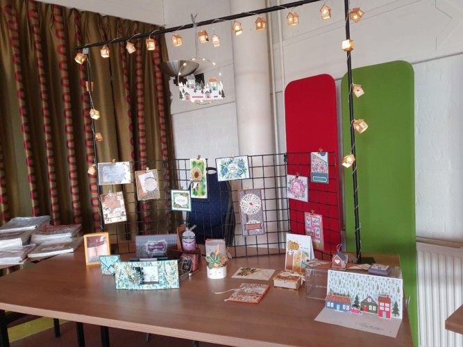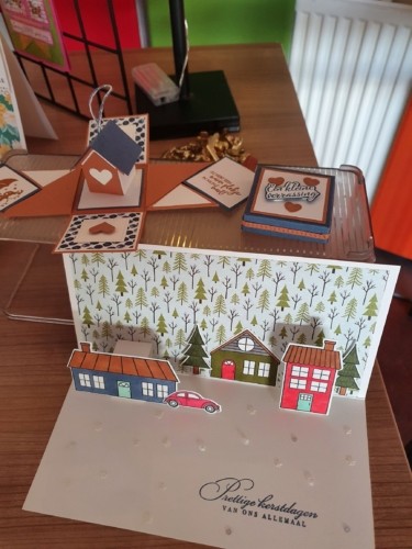 De projecten die gemaakt konden worden waren een pop-up kaart, een explosiedoosje en als klapper: een lichtjeskrans. Nogmaals dank aan de maaksters van de oorspronkelijke projecten.
