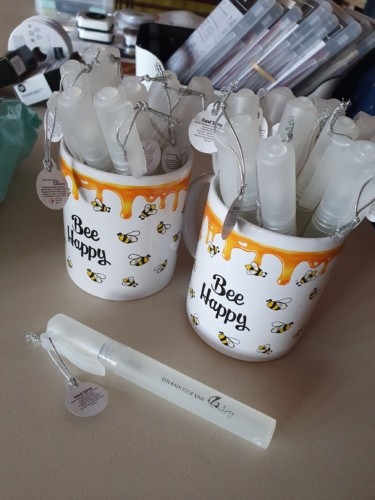 In de handhygiëne was natuurlijk ook voorzien: voor elke gast was er een “Kadootje van Attelyootje” – een spray flesje gevuld met handalcohol.