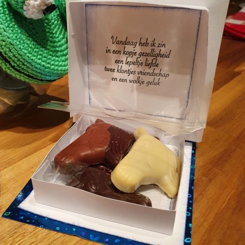 Andries en ik zijn samen ook erg verwend met kadootjes: lekkere snoepjes, lieve woorden, chocolaatjes, kaarsjes… zo lief! Dank jullie wel nogmaals. Dit betekent echt heel veel voor ons.