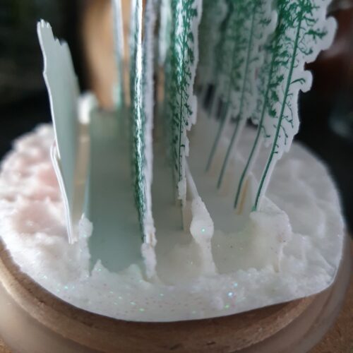 Om het bodemstuk wat weg te werken, bewerkte ik hem met Glinsterend Witte Embossingpasta. Net alsof sneeuw dus.