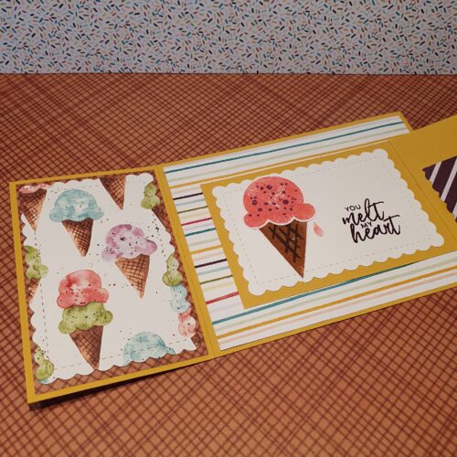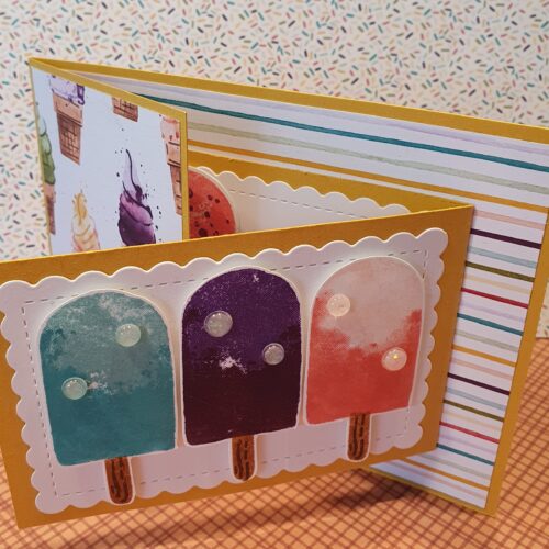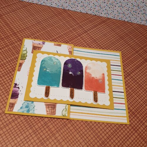 Bij het ijsjes-DSP matcht ook een leuke stempelset en pons. Daar heb ik natuurlijk ook mee zitten spelen.