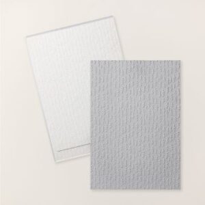 Vóórdat ik de gestanste achtergrond opplakte embosste ik een stuk kaartkarton (bsaic Beige) met de embossingmal (A5-model!) Gathering Leaves (165983). Eigenlijk is dit dus een sneak peek van de Online Only producten die ook vanaf 3 september verschijnen….