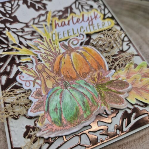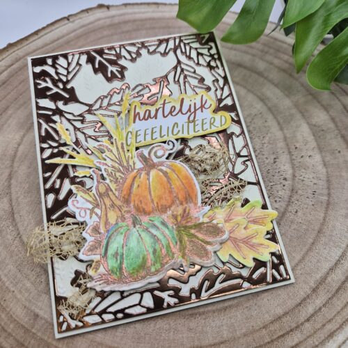 De achtergrond is gestanst met een stansmal die in de bundel zit (Bundel: Amber Autum – 165893).