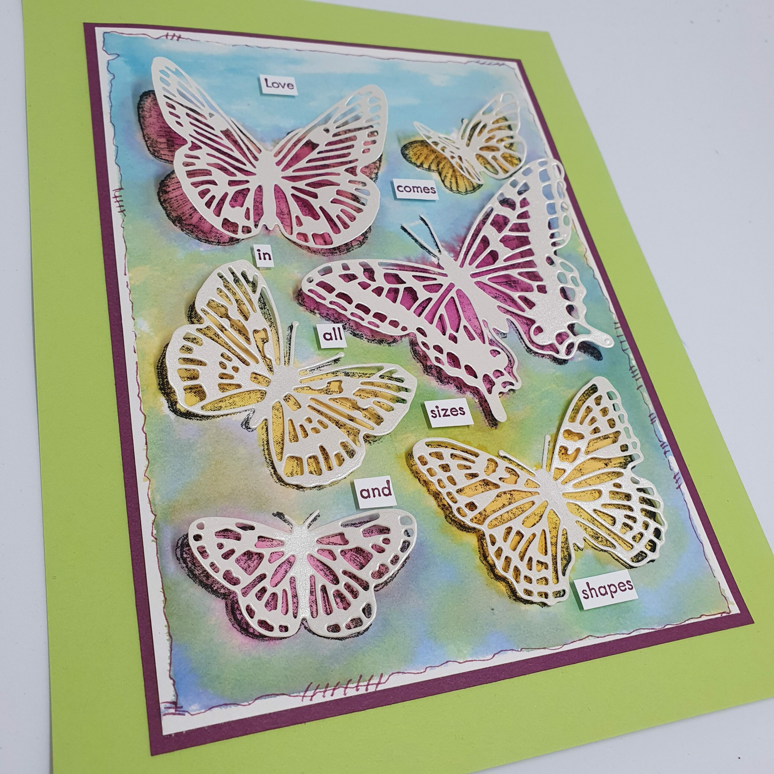 Er is een passende stansenset van, die de contouren uitstanst, maar ook eentje die gedetailleerde vlinders stanst. Prachtig te combineren.