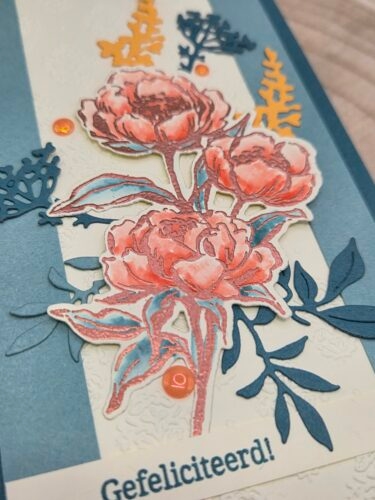 Hoewel: de Gallery Blooms gaat verdwijnen uit het assortiment, en dat vond ik voor mij wel een heel bruikbare stempelset. Zeker in combinatie met de techniek Heat-Embossing, en aquarellen of inkleuren met Blenderpen, maakt het voor mij toch een favoriet.