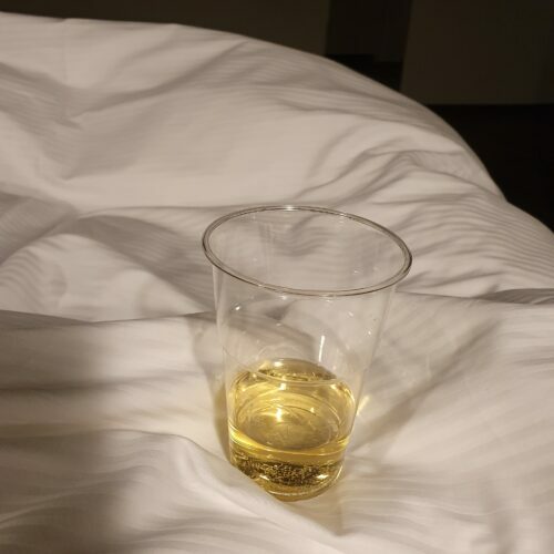 De witte(!) wijn smaakt ons goed en helpt bij het opwarmen.