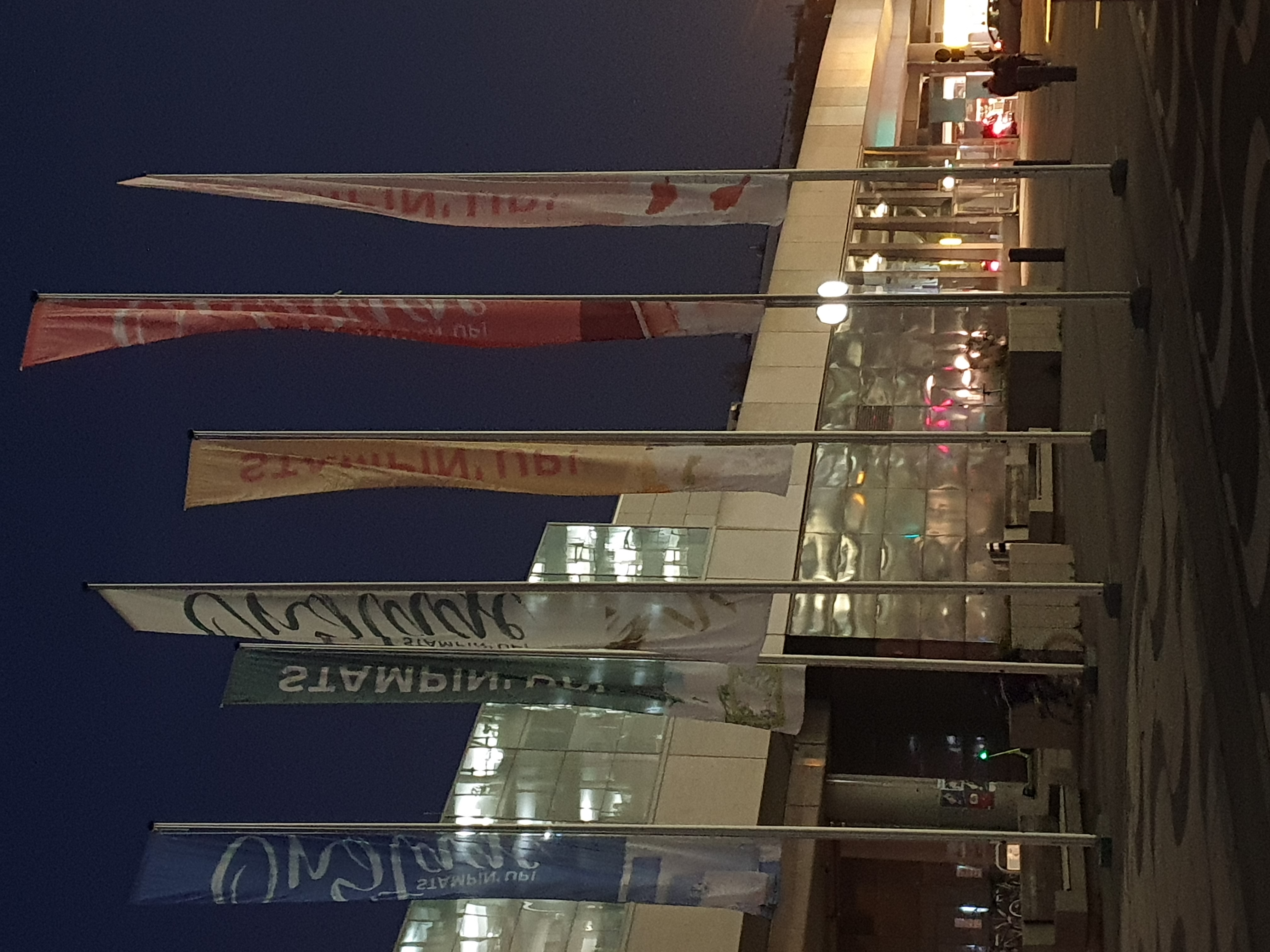Nadat alles zijn plekje had gevonden op de kamer zijn we op zoek gegaan naar een supermarkt, voor water en frisdrank. Dat maar op de kamer gebracht en door… op zoek naar het congrescentrum, Messe Wien. Het was een stevige wandeling en hebben het gevonden. Er rijdt een metro (U-bahn U2) die vlak naast het hotel start en eindigt voor de deur van de Messe. Lekker makkelijk. In het donker waren wel al routemarkeringen te herkennen.