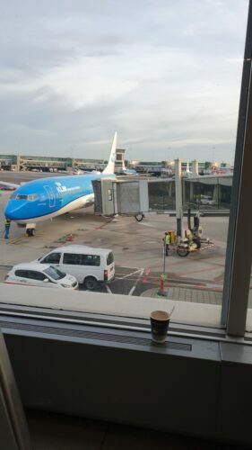 We hadden geen enkel probleem bij Security dus door naar de Gate. Het vliegtuig kwam kort daarna aan, loste de passagiers en we konden ook vlot het vliegtuig in.
