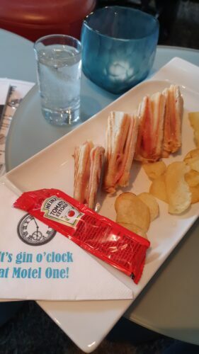 We konden nog niet meteen de kamer in maar hadden wel trek in een kop koffie/cappuccino. Wat kun je daar van genieten, zeg! Een tosti ging er ook prima bij in.